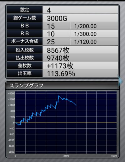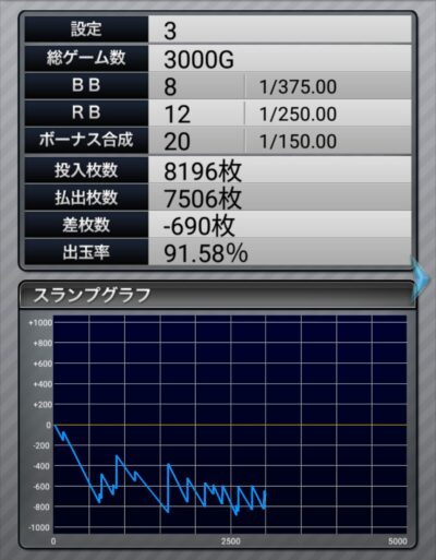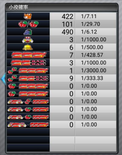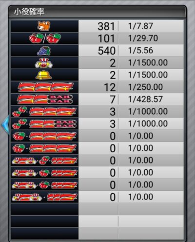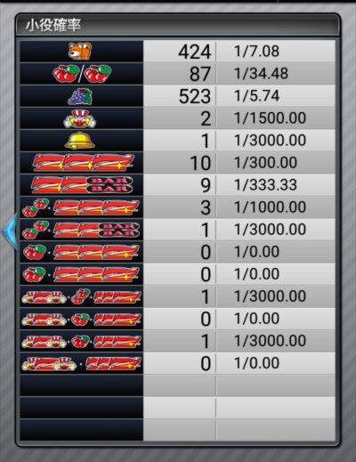 ぶどう出現率もイマイチですし、これは3000ゲームで見切れそうです。