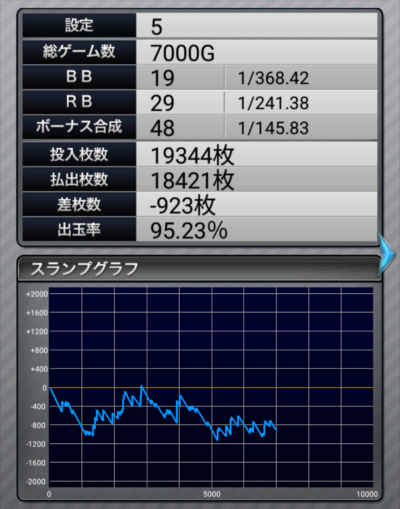 なんとびっくり、設定5なのに-900枚という結果になりました。