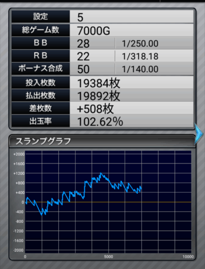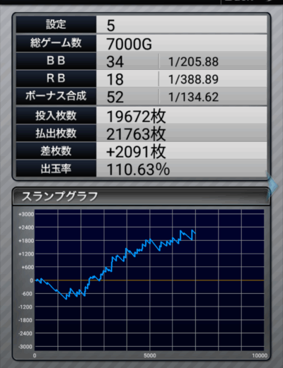 ついに「さすが設定5!」といいたくなるようなデータになりました。