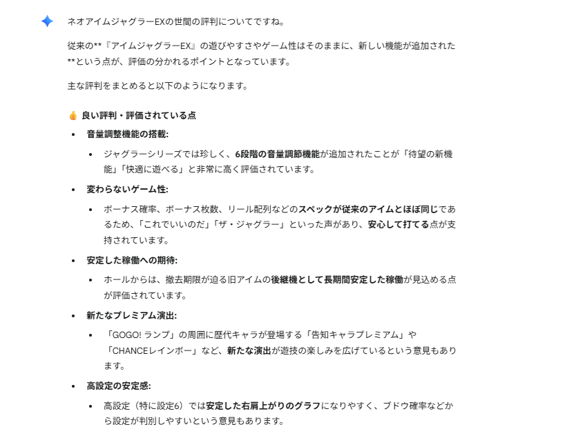 その世の中の流れに乗り、この企画ではgoogleの生成AIモデル「Gemini」に対して『ジャグラー』に関する質問を投げかける。