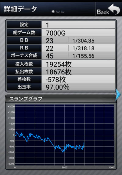 つまり、これが(あくまでも目安ですが)設定1を打ち切った際の一般的な挙動と言えるかもしれません。